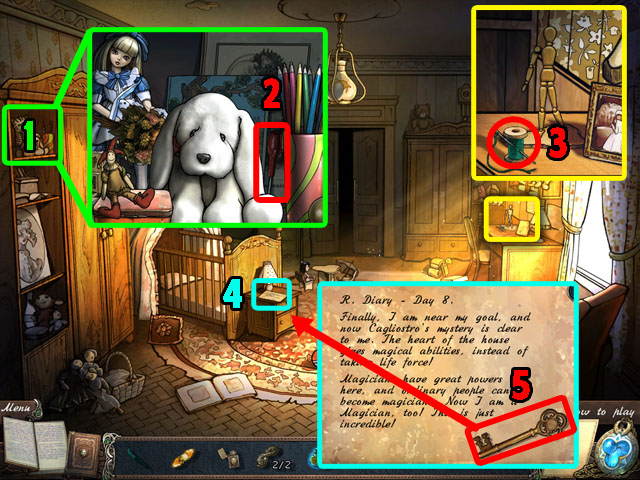 ถ้ามีแม่ติดเกม อาจจะต้องใช้แว่นช่วย อย่างในรูป ไอ้ตัวอักษรชมพู คือของที่เราต้องหาประกอบเพื่อถือเป็นของ1ชิ้น เช่น ถ้วยน้ำชา เราต้องหาถุงชา ถ้วยชา และน้ำชา โดยเอาถุงใส่ถ้วยแล้วค่อยรินน้ำชา